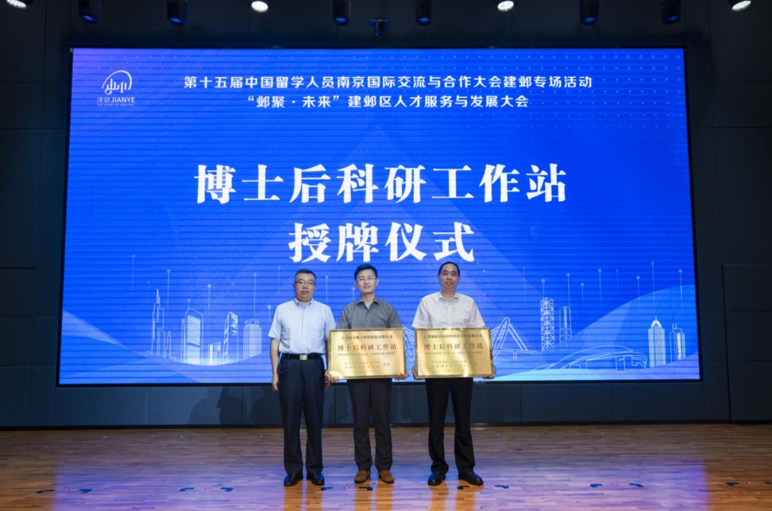 近日,第十五屆中國留學人員南京國際交流與合作大會建鄴專場活動“鄴聚·未來”建鄴區(qū)人才服務與發(fā)展大會在南京建鄴區(qū)金魚嘴基金大廈成功舉辦。省人社廳副廳長顧潮為建鄴區(qū)新設立的兩家博士后科研工作站授牌,集團總裁助理、綠材谷科技總經(jīng)理魏星代表綠材谷科技參加授牌儀式。