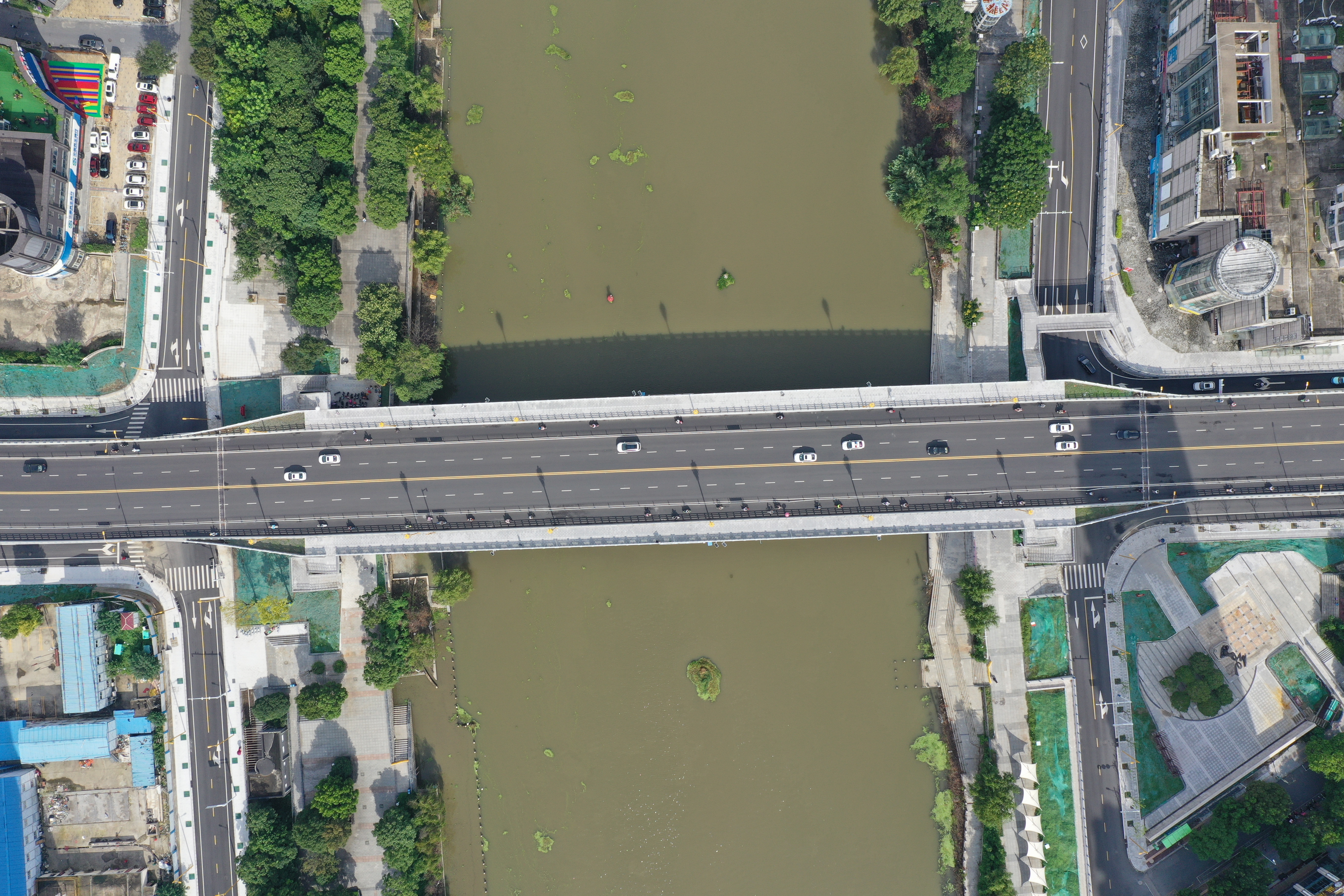 該項目位于南京市六合主城區(qū)咽喉要道龍津路,北起紫霞街,南至雙客路,跨越滁河。橋梁在拆除原老橋的基礎(chǔ)上進(jìn)行新建,新橋全長599.7m,橋?qū)?0.5m,其中主橋長292m采用三跨變截面預(yù)應(yīng)力砼連續(xù)梁,北接線長136m,南接線長171.76m,橋下設(shè)輔路。該工程于2018年開工建設(shè),2020年通過竣工驗收。期間,項目部圍繞“確保省優(yōu)、爭創(chuàng)中國市政最高質(zhì)量獎”的目標(biāo),科學(xué)組織、精心施工,落實精細(xì)化管理,運用自主創(chuàng)新的“水上鋼平臺圬工墩清障處理技術(shù)”及多種新技術(shù)、新工藝,努力提高項目整體施工水平,確保了工程優(yōu)質(zhì)高效完工。
