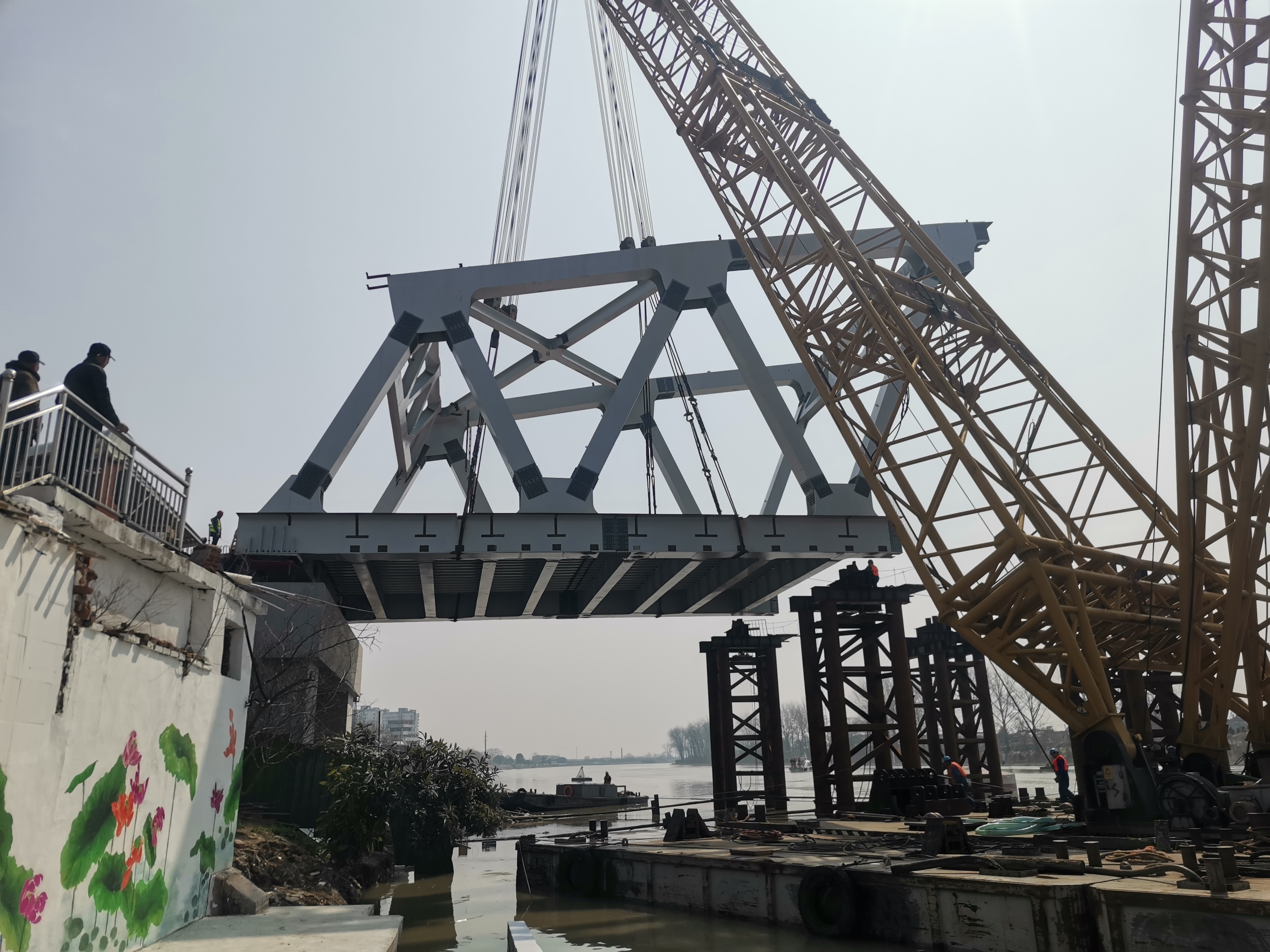 首節(jié)鋼桁梁的成功架設,為寶應運河大橋改建工程項目施工按下“快進鍵”?!跋码A段將全面推進鋼桁梁吊裝作業(yè),力爭3月8日實現(xiàn)合龍,為橋面系施工打開作業(yè)面?!苯K交工項目負責人說道,“我們將繼續(xù)發(fā)揚鐵軍精神,重安全,抓質量,講效率,精益求精,為如期實現(xiàn)通車目標奮勇前行?!?nbsp;