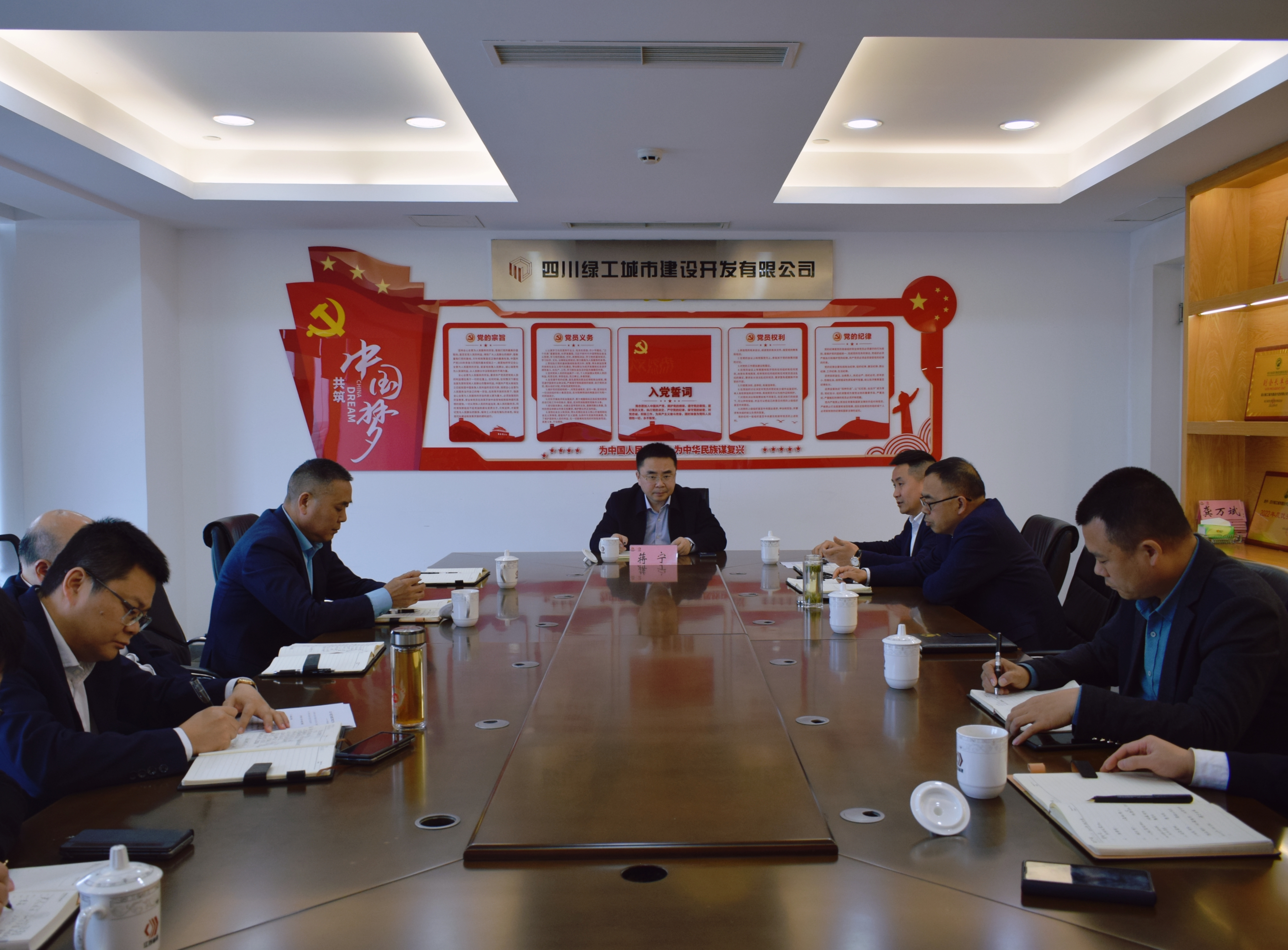 3月29日,集團(tuán)總裁蔣寧赴四川綠工城市建設(shè)開發(fā)有限公司調(diào)研指導(dǎo)工作。集團(tuán)總裁助理、四川綠工董事長龔萬斌,集團(tuán)總裁助理、法務(wù)總監(jiān)朱雙海,四川綠工總經(jīng)理羅永建參加座談。